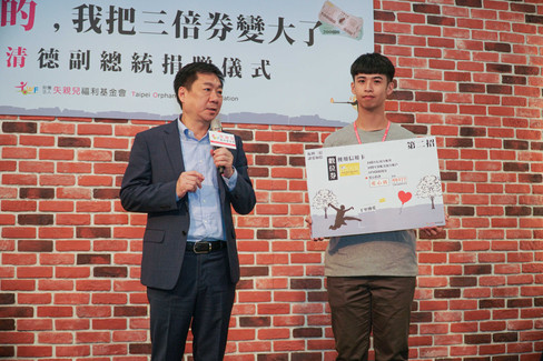 今年新冠肺炎疫情衝擊全球經濟,連帶社福團體的捐款也明顯受到影響,賴清德副總統看見基金會募款不容易,對於喪親家庭的困難感同深受,今日率領內政部政務次長陳宗彥來到失親兒基金會,捐出熱騰騰的三倍券,何志偉委員、許淑華憶員、吳思瑤委員、洪健益議員,也連袂出席表達關懷,和碩聯合科技童子賢董事長更以私人名義捐贈二十萬元,以實際行動展現對失親兒的大愛。